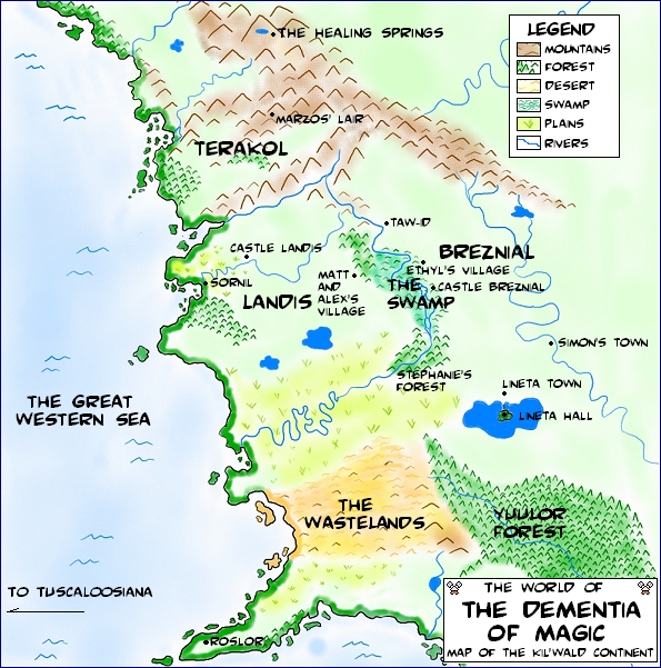 You remember Laura Taylor, right? Well, turns out she's wanted to make a map of the (as yet known) DoM world for a long time now. And here it is! She took the time to dig through the entire archive to find the various locations I've come up with and where they all are! And it DOES look eerily similar to how I picture it in my head, honestly.
