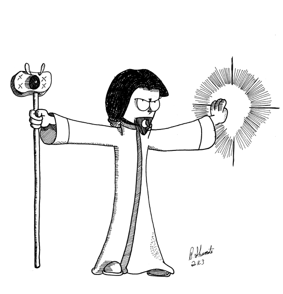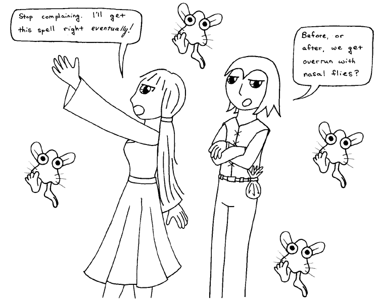 Out of nowhere, JB gave me this nifty bit of fanart. Complete with more of Alex's Nasal Fly-worthy spells. JB's got a rather nifty drawing style, as you can see. And I dig the magic effects.