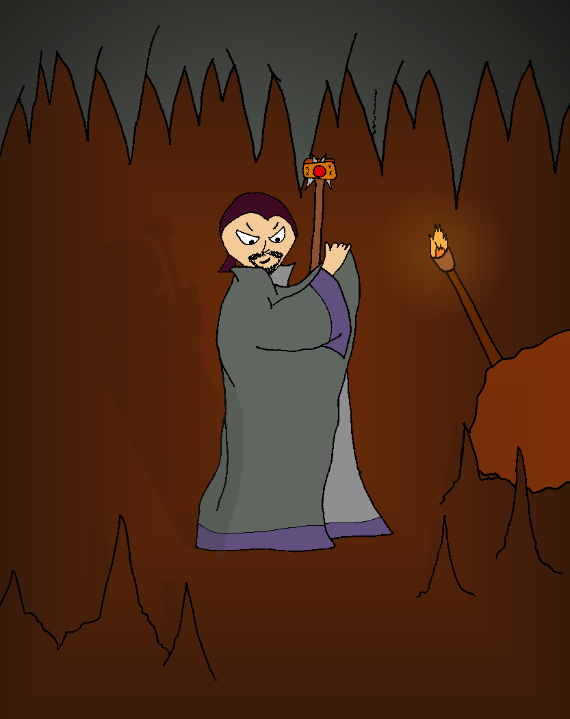 I subjected my good friend Foxfulness to the DoM, and she seemed to love it immediately. When she finished the archives, she came up with this little drawing of Marzos back in the cave in Terakol. Spiffing.