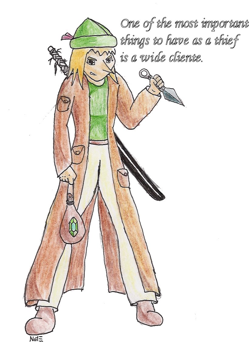 During Break Time 2, Larazoma, one of the forum regulars, handed this to me. Clearly, more people like Phinn than I thought. I've got to put her in more plots. But hey! Bask in the fantasyish art Larazoma's good at drawing!
