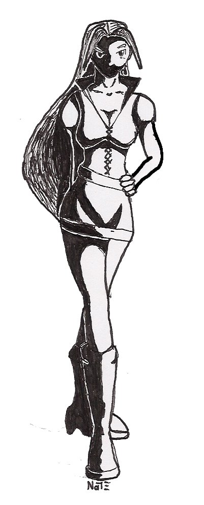 If you kept track of the forums back before Stephanie appeared, I was fighting with how she'd look. Her outfit's kinda vital to her look and all. Going on some of the older ideas, Nate Dubya came up with this pic, which I still think has a lot more sinister a look than I could've given her. Check out how Stephanie might've looked!