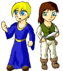 Here's a more realistic-looking drawing of Matt and Alex by iris, an old friend of mine. Always curious, given my screwball cartoonish style isn't exactly made for realism, right? Anyhoo, a very cool pic indeed.