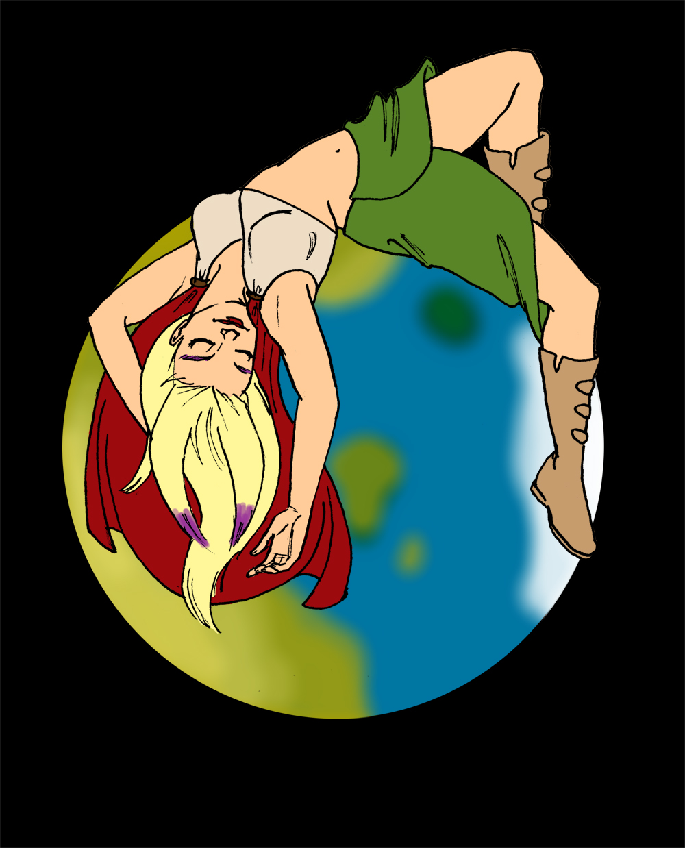 So Jessica Regenbrecht, a good friend of mine, was asking for commissions a while back. Thus, to give her a curious assignment, I commissioned her to draw the main part of the Worldwide Stephanie wallpaper I made a couple years ago. Specifically, the part with Stephanie and the planet. And this is what she came up with. Which is quite awesome indeed.