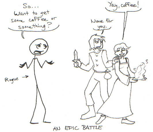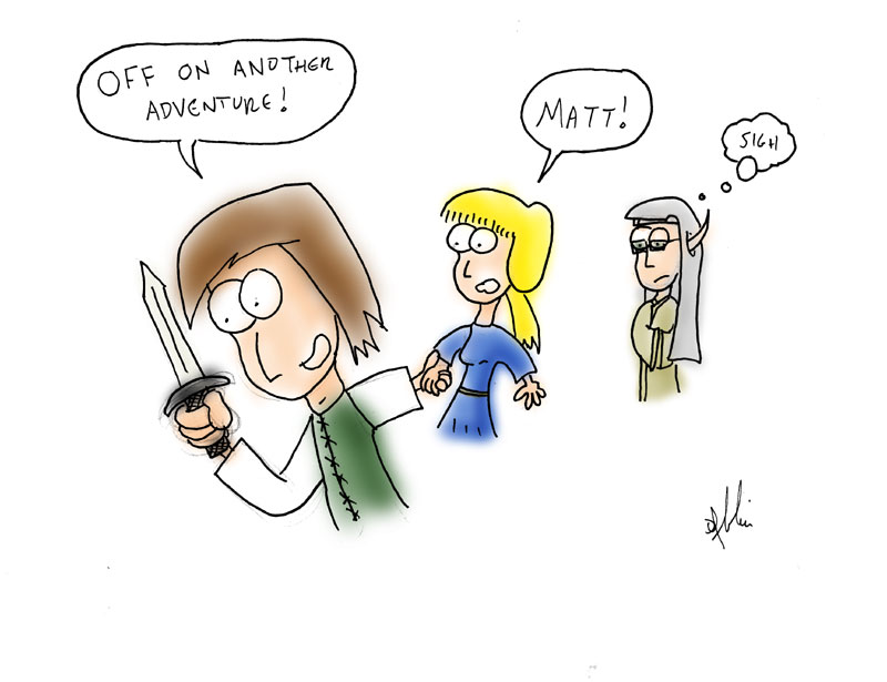 Out of nowhere, Dave stopped by and decided to finish the job of reading the archives that he started so long ago. Once he was done, he came up with this little gem. While I do have to wonder why on earth Matt's excited to go on an adventure, it's a cool pic anyhoo!