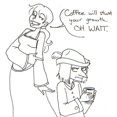 Jessica Regenbrecht returned a bit after her first bit of fanart a month ago to show her never-ending love of coffee via DoM characters! What's more, she did something I don't see very often and actually gave me fanart of Jacob! Dig that!