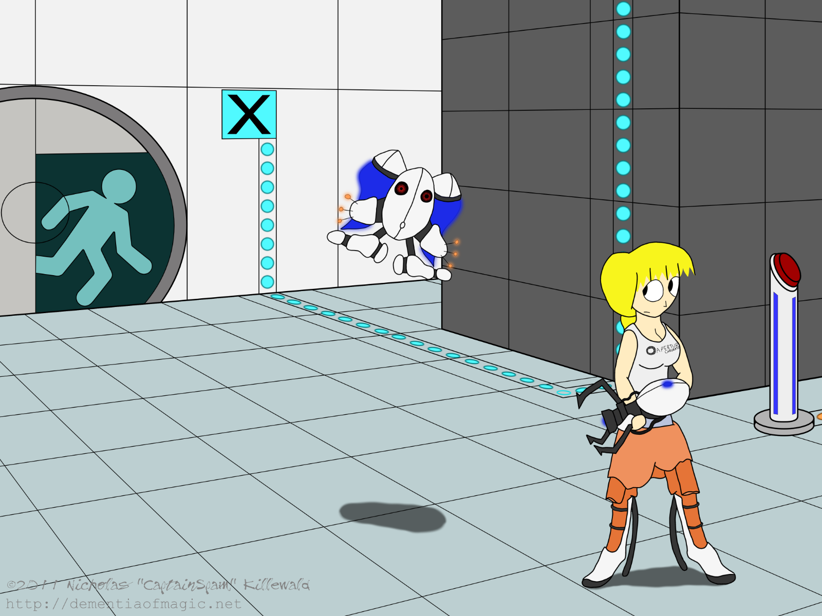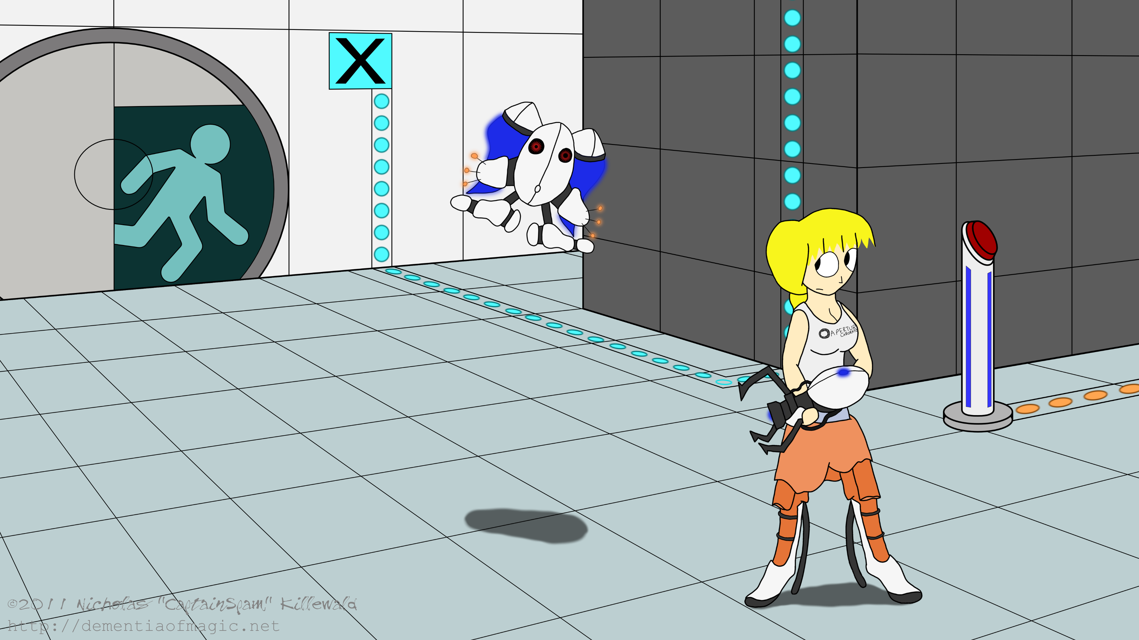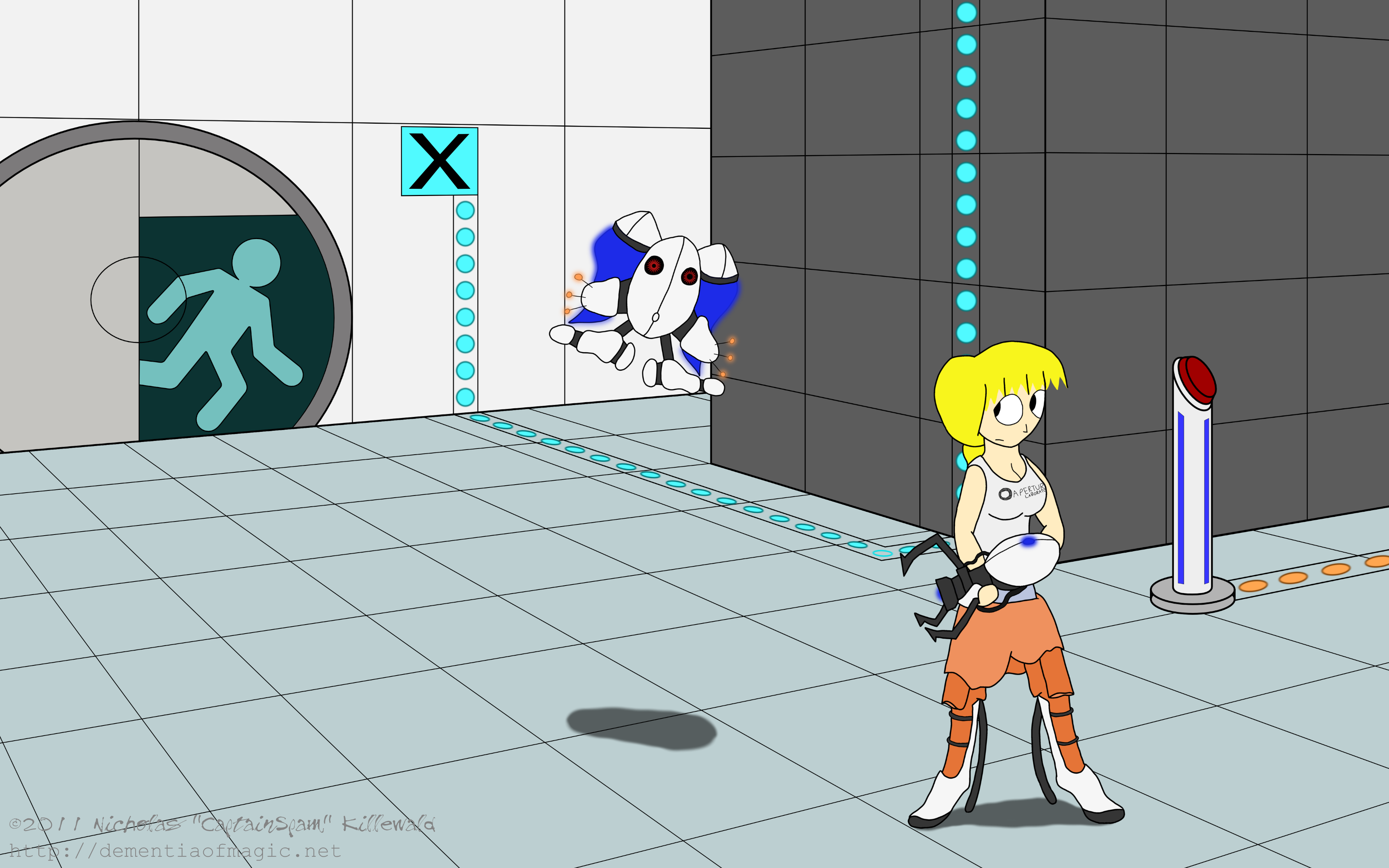 Hello! This is the part where I draw Alex as Chell! It even includes one standard-issue Aperture Science Airborne Rhinotological Device for increased testing efficiency.