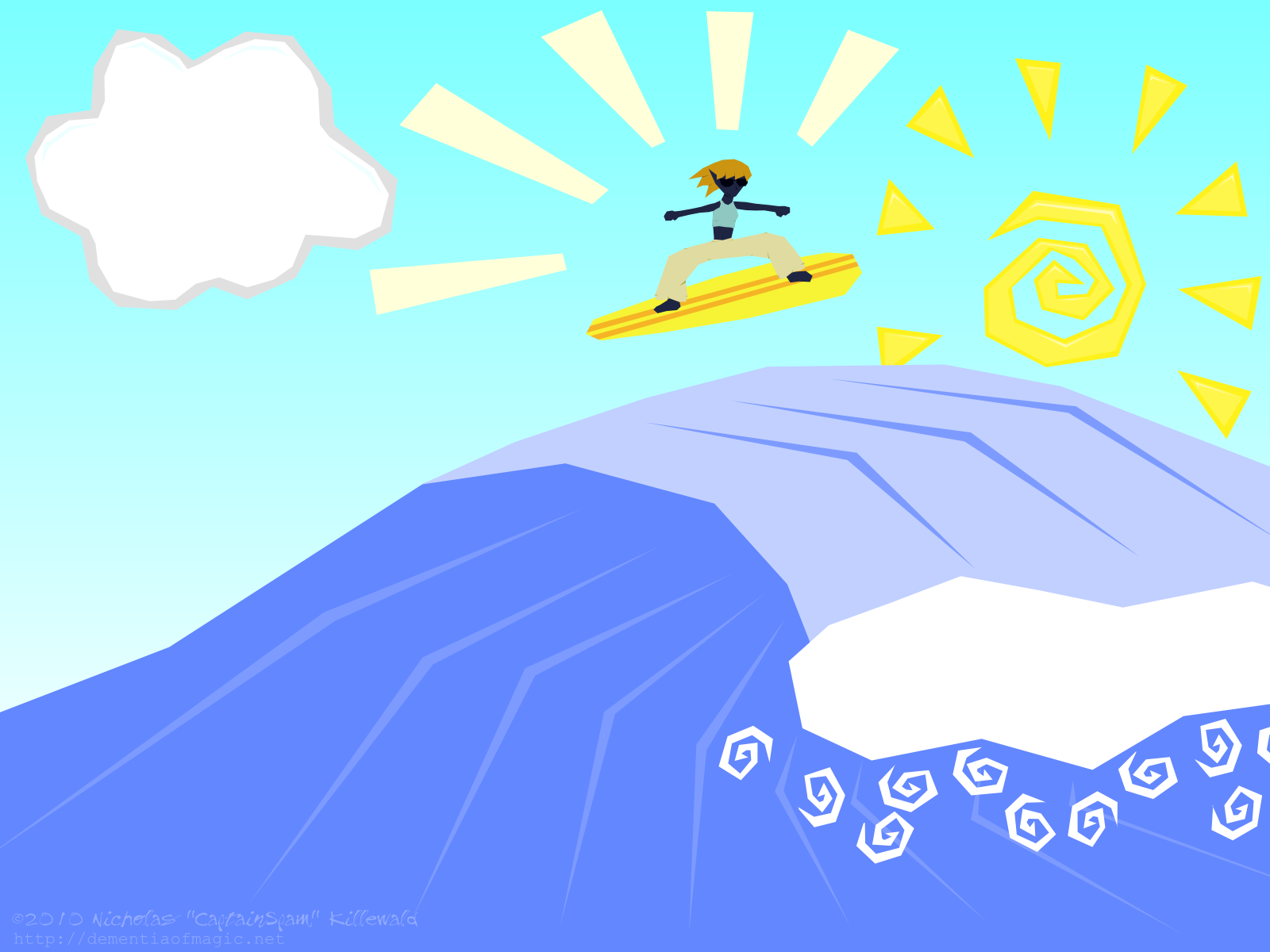 You remember that bright idea I had to make wallpapers for all of Chapter Four? Well, that got sort of derailed. But, this was going to be the second one: A vectoriffic wallpaper of a beach elf doing what she does best. A different style than what I usually go for. Happy summer! In the northern hemisphere!