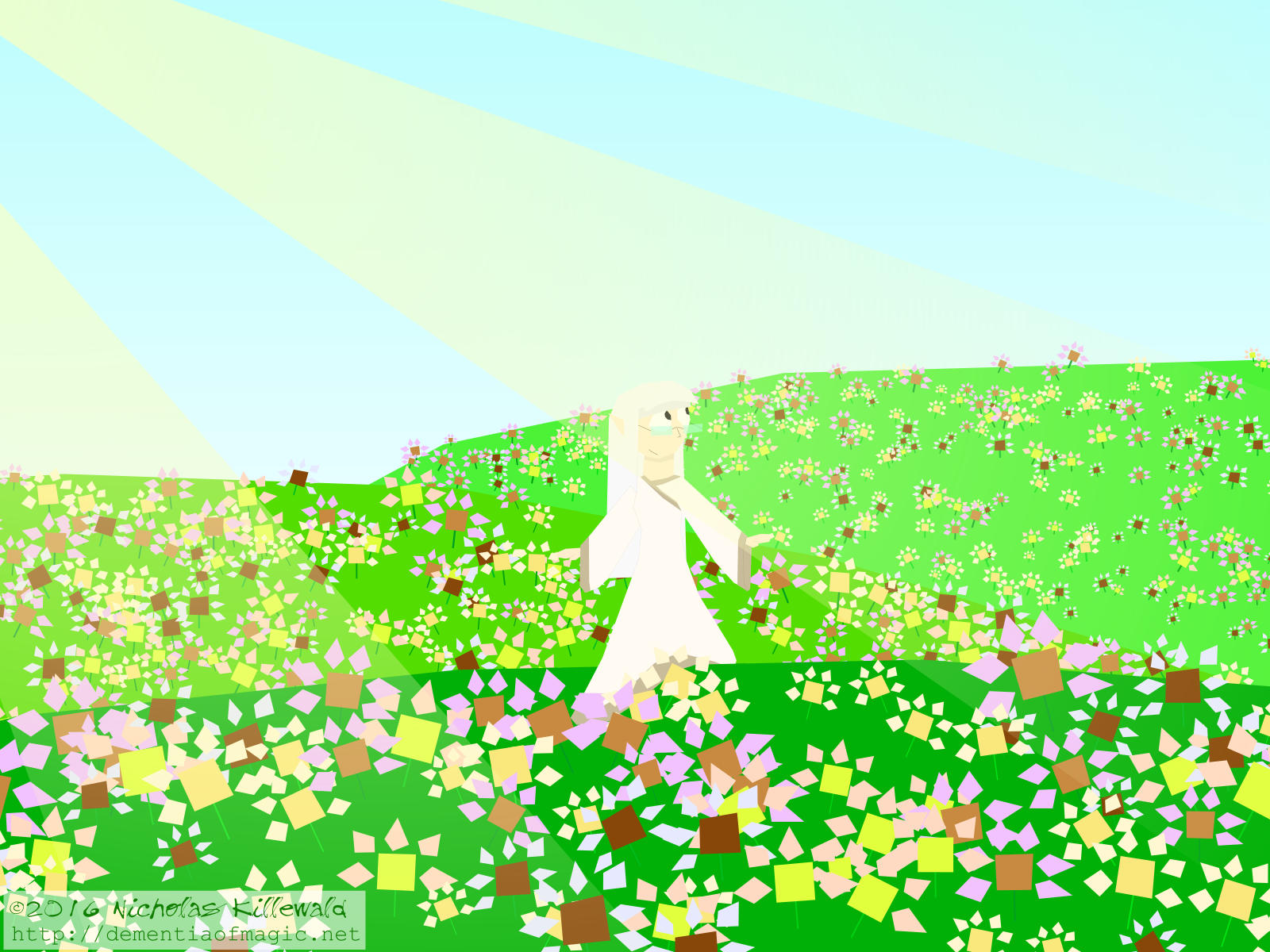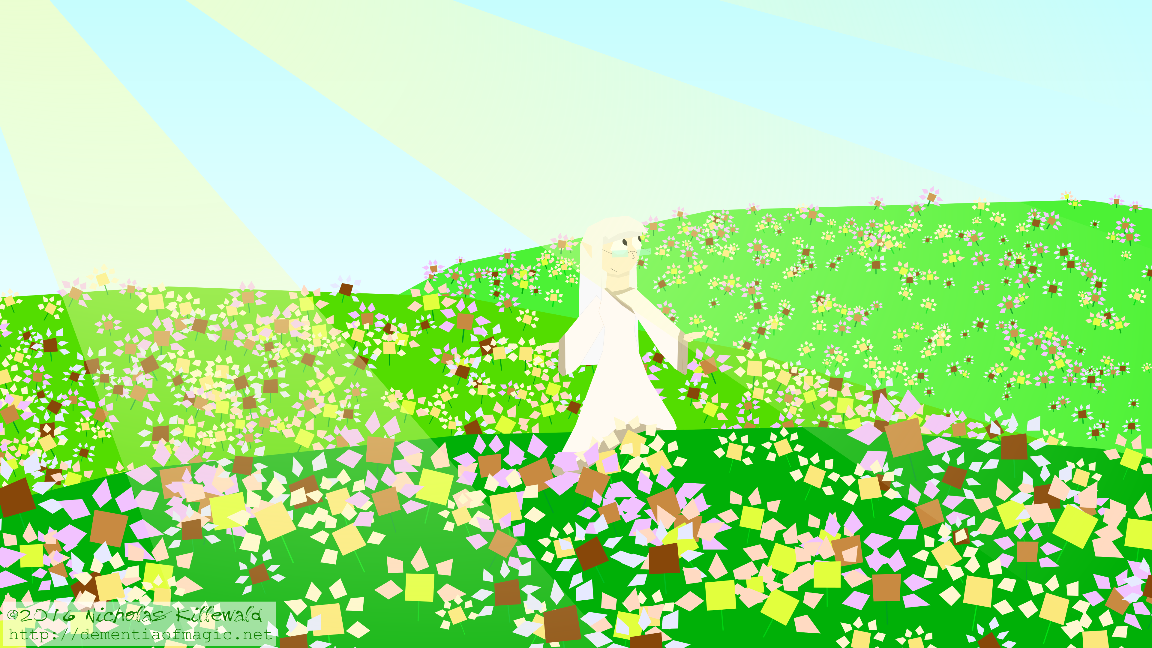 Finishing up the Vector Season Series, here's one for spring! Springtime! Complete with Phinn (I swear I couldn't come up with any other character better-suited for the job) cheerfully walking through a sunlit field of square vector flowers! All thanks to conspicuous use of the Spray Objects tool in Inkscape!