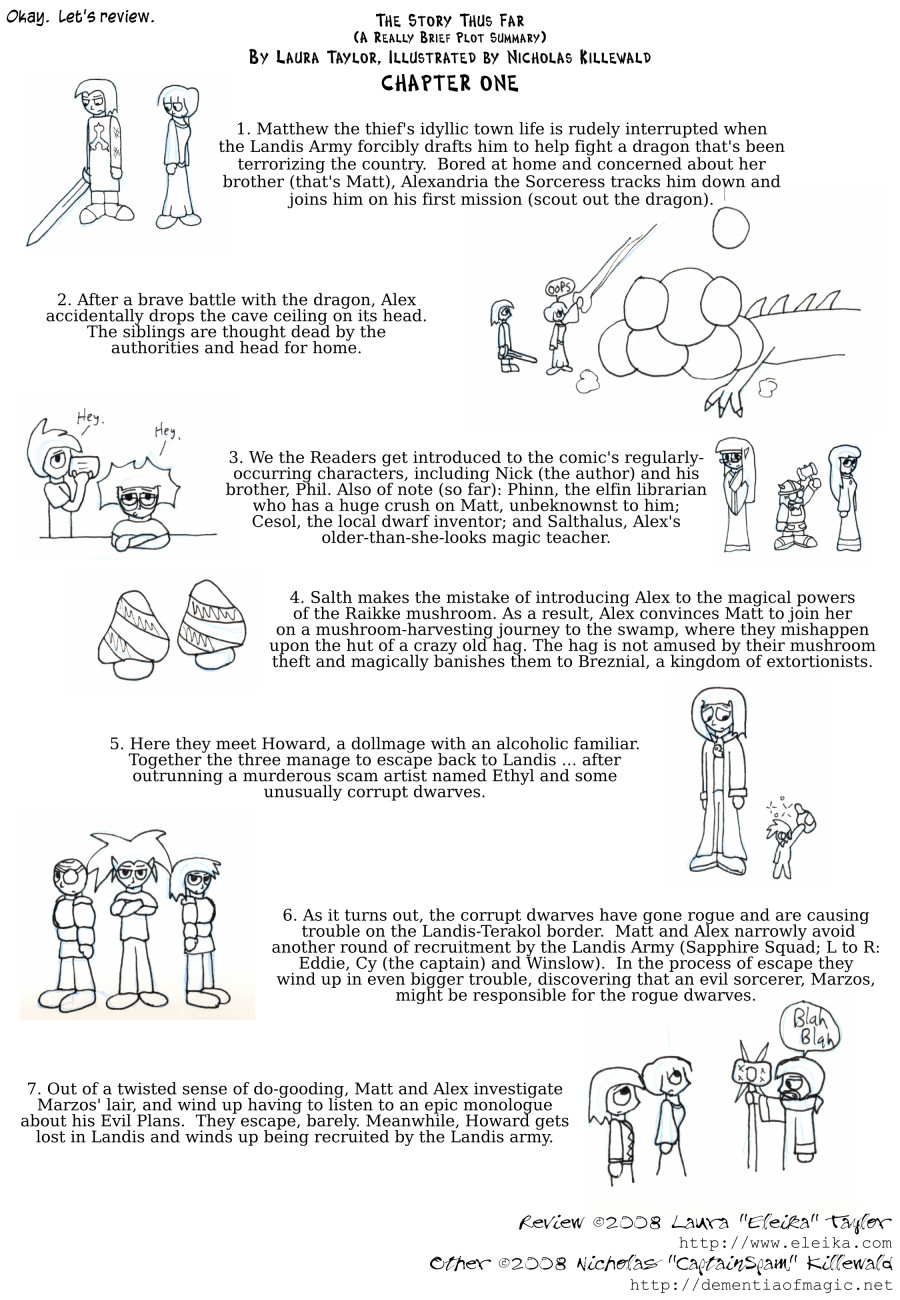 I've wanted to do a quick plot review for years now, except that it kept ballooning out of control whenever I tried to summarize things. So then a friend of mine, Laura Taylor, wrote up a condensed summary for me. Thanks, Laura! There'll be two more updates of this, one more per chapter.